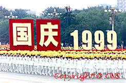 首都各界慶祝中華人民共和國成立50周年大會10月1日在北京隆重舉行,圖為盛大的群眾游行隊伍。作者:趙偉