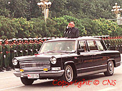 國(guó)家軍委主席江澤民十月一日在北京長(zhǎng)安街上檢閱參加國(guó)慶游行的解放軍陸、海、空、二炮、武警和地方武裝部隊(duì)。(本社記者長(zhǎng)安街傳真)作者:劉洪斌