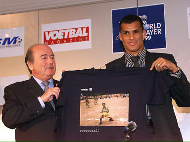 圖文:里瓦爾多榮獲1999年世界最佳球員稱號 2000年1月25日 07:20 ![]() ![]() ![]() 布魯塞爾1月24日消息:西班牙巴塞羅那隊的巴西前鋒里瓦爾多24日被評選為國際足聯1999年世界最佳球員 。 據新華社報道,里瓦爾多在有140個國家隊教練參加的投票評選中獲得勝利,并成為繼羅馬里奧(1994年)和 羅納爾多(1996和1997年)之后第三個贏得這一殊榮的巴西球員。 英格蘭中場球員貝克漢姆和阿根廷的巴蒂斯圖塔在這次投票中,分別名列第二和第三。 里瓦爾多1999年為巴西贏得美洲杯賽冠軍和為巴塞羅那隊奪得西班牙甲級聯賽冠軍作出了杰出的貢獻。他上月還 被評選為1999年歐洲最佳球員。 里瓦爾多還被《世界足球》雜志的讀者評選為1999年世界最佳球員。 中國女子足球隊隊長孫雯獲得了1999年女足最佳運動員獎,并領取了1999年世界杯女子足球賽金靴獎。 |