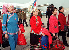 廣西壯族自治區(qū)的少數(shù)民族人大代表三月一日上午到達(dá)北京國際機(jī)場,準(zhǔn)備參加即將召開的“人大”會議。作者:王麗南