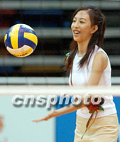 2001年“香港小姐”楊思琦,8月5日到香港世界女排大獎賽賽場助興。中新社傳真 任晨鳴 攝