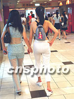 國際服裝節開幕前夕,大連街頭時裝秀已經拉開序幕,時尚女孩以火熱的透視裝,露背裝盡現青春氣息。中新社記者 王瑤 攝