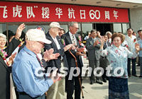 60年前曾為中國抗日戰爭作出特殊貢獻的美國“飛虎隊”四名隊員及陳香梅女士,5日上午來到北京蘆溝橋中新社記者 趙振清 攝抗日戰爭紀念館,參加美國“飛虎隊”援華抗日60周年座談會等一系列活動。