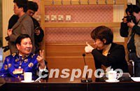 政協委員、山東省殘聯副主席張海迪四日在政協社會福利界分組會上,用啞語向內蒙古聾人協會主席包.額爾敦陶吐格問好。張海迪在會上談到在新的社會形式下特困殘疾人的社會保障問題。中新社記者 劉殊瑾 攝