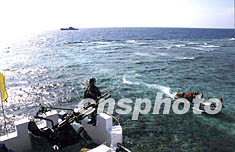 中國海軍的補給艦五月巡航在南沙礁堡之間,保證將士平安戍邊。作者:李革平