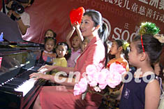 亞洲美皇后李冰二十一日在北京莊勝崇光商場(chǎng)參加關(guān)愛孤殘兒童慈善行動(dòng),并現(xiàn)場(chǎng)演奏鋼琴曲《茉莉花》。毛建軍 攝