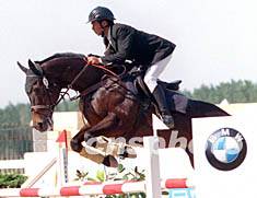 2002年“寶馬杯”全國馬術障礙精英賽總決賽26日在北京格林馬會舉行,來自北京、上海、內蒙古、新疆、廣東等40名運動員和50匹優秀運動馬參加了比賽。廣東李振強、上海張濱、內蒙古孟克獲得個人前三名。趙振清 攝