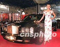 曾在國際上獲獎的中國名模李冰,日前在2002年北京國際汽車展覽會上,與世界頂級加長賓利車(售價888萬元人民幣)相伴,格外搶眼。趙振清 攝