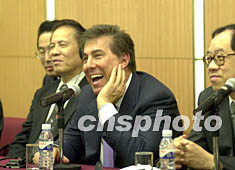 美國“賭王”史提芬·永利談“澳門賭王”何鴻燊 2002年06月25日 08:31 ![]() 永利度假村(澳門)股份有限公司二十四日與澳門特區政府簽署娛樂場幸運博彩經營批給合同簽字儀式后,永利負責人史提芬·永利在記者招待會上談笑風生。李剛 攝