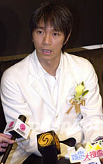 影星周星馳26日出席「香港國際影視展2002」開幕典禮,在接受訪問時,他表示《少林足球》的成功,證明香港電影特技比美荷里活西片。中新社圖 鄧慶樂 攝