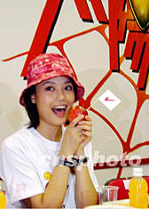 28日參與在香港中文大學(xué)發(fā)起的“新世紀(jì)有營(yíng)早餐大行動(dòng)”上,呼喚歌迷養(yǎng)成進(jìn)食早餐的好習(xí)慣。盧峰 攝