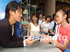香港影視明星鄭伊健,7月20日在香港銅鑼灣推介一款歐洲名表,引來眾多女影迷排隊從他手中領取有鄭伊健照片的畫頁。任晨鳴 攝