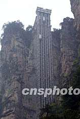 在湖南張家界武陵源風(fēng)景區(qū)建造的百龍旅游電梯最近開始試運(yùn)行。該電梯垂直高差三百三十五米,運(yùn)行高度三百二十六米,是目前世界上最高的全暴露觀光電梯。作者:毛建軍