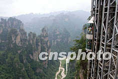 圖:世界最高的觀光電梯在張家界試運(yùn)行