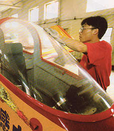 《新聞周刊》:中國天空將開放 私人飛機欲起飛 2002年08月01日 11:42 ![]() 不能起飛的飛機:科源飛機公司的市場人員在擦試飛機上的灰塵。由于空管限制每次升空均需復(fù)雜程序。