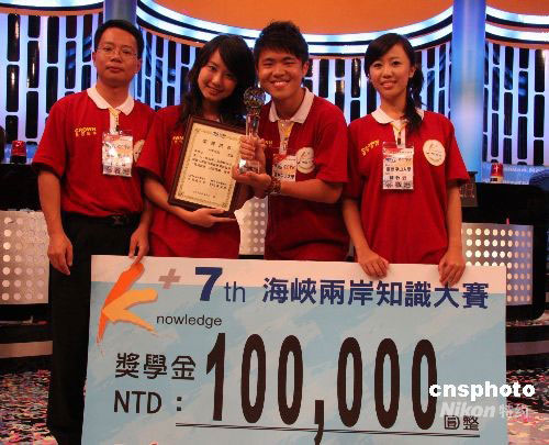 第七屆“海峽兩岸知識大賽”五日在臺北落幕,來自廣州中山大學的選手獲得總分第一。中新社發(fā) 耿軍 攝