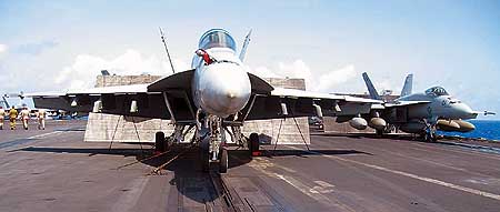 美軍飛機從航母上起飛時,并不是“飛”出去,而是被一個類似于大力彈簧的彈射器“彈”出去的。同樣,飛回航母的飛機也不是“停”下來的,而是被三根起阻攔作用的鋼索“絆”住的。三根設在前、中、后位置的阻攔索,就是飛行員降落的三次機會。飛行員根據飛機快要著陸時的高度,來決定把飛機掛在哪一根阻攔索上。“里根”號每隔45秒可以降落一架飛機,降落時速度在兩秒鐘內從105英里每小時降到0,可謂嘎然而止。半個多小時的觀摩中,我們觀看了十幾個架次飛機的起降,其中只有一次失敗——一架F-18戰斗機降落時沒能成功掛住阻攔索,因此不得不重新飛上天空。