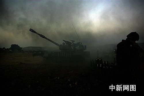 資料圖:7月15日,以色列軍人在以黎邊境監控著自動化火炮向黎巴嫩真主黨目標發射155毫米炮彈。