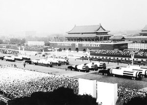 公元1984年10月1日。共和國第35個生日,一枚枚白色的戰(zhàn)略導(dǎo)彈在巨型戰(zhàn)車牽引下,緩緩駛過天安門廣場。