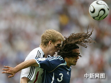 德國與阿根廷兩大足球豪門在世界杯歷史上兩次決賽相遇,各勝一場(chǎng),第三度的交手今天在二00六年德國世界杯第一場(chǎng)四分之一決賽中上演。這場(chǎng)世紀(jì)大戰(zhàn),開場(chǎng)并沒有上演精彩的攻勢(shì)足球,雙方打得非常拘謹(jǐn),唯一一次亮點(diǎn)就是德國隊(duì)的施奈德助攻,巴拉克后排插上頭球攻門,可惜力量稍大偏出門柱。