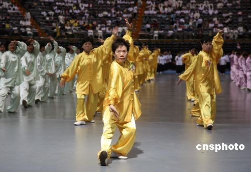 由臺灣太極拳總會、臺北市政府等共同主辦的太極拳錦標賽,十月十八日在臺北市體育館(臺北小巨蛋)開賽,來自臺灣部分縣市及臺灣以外地區的千余名太極拳愛好者參賽。中新社發 楊旭 攝