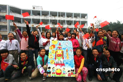 圖:小學生歡慶“嫦娥一號”奔月成功