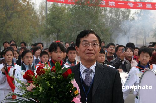圖為中國科學院院士、“嫦娥一號”衛星總指揮兼總設計師葉培建受到夾道歡迎。
