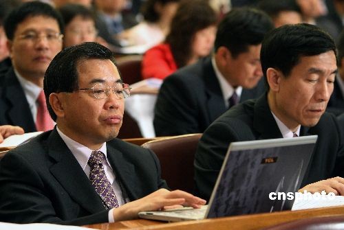 3月5日上午,十一屆全國人大一次會議在北京人民大會堂開幕,一些代表自帶筆記本電腦出席,實時收看大會網絡視頻直播。中新社發 任晨鳴 攝