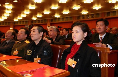 3月13日下午3時,全國政協十一屆一次會議第四次全體會議在北京人民大會堂舉行,會議的主要議程是選舉政協第十一屆全國委員會主席、副主席、秘書長和常務委員。宋祖英與張藝謀相鄰而坐認真聽會。中新社發 盛佳鵬 攝