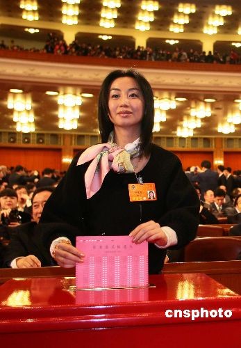 3月13日下午,全國政協(xié)十一屆一次會議第四次全體會議在北京人民大會堂舉行,選舉政協(xié)第十一屆全國委員會主席、副主席、秘書長和常務(wù)委員。新階層女委員、黑龍江省工商聯(lián)副主席、哈爾濱翔鷹集團股份有限公司董事長兼總經(jīng)理劉迎霞首次在大會堂投票選舉。中新社發(fā) 盛佳鵬 攝
