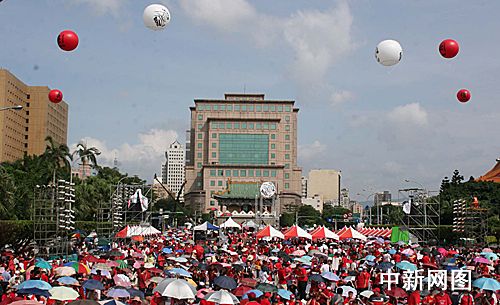 9月9日下午,“百萬人民反貪腐倒扁靜坐”活動在臺北正式啟動。圖為靜坐現場,民眾高呼“倒扁”口號。 中新社發 肖龍聯 攝