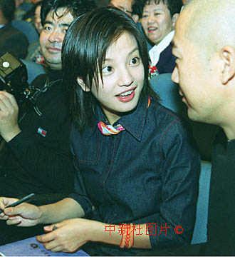近幾年在電影、電視界十分走紅的電影演員趙薇、張國立,五日來到北京電影學院參加該院五十年院慶。慶祝會上他們被安排在第一排,與該行業老一代杰出人士比肩而坐。中新社圖片 王麗南 攝