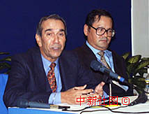 來(lái)自亞洲二十四個(gè)國(guó)家和澳大利亞的政要、前政要,日前在風(fēng)景優(yōu)美的海南博鰲水域,參加為籌備“亞洲論壇”而召開(kāi)的“亞洲論壇專家學(xué)者會(huì)議”,前東盟秘書(shū)長(zhǎng)辛格先生(左)被任命為博鰲“亞洲論壇”臨時(shí)秘書(shū)長(zhǎng)。中新社記者 關(guān)向東 攝