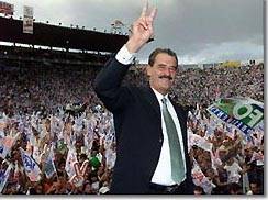 墨西哥當選總統福克斯今天就職(附圖) 2000年12月1日 17:06 ![]() 中新網北京12月1日消息:墨西哥當選總統?怂箤⒂诮裉煨木吐,他重申,他將使墨西哥發生巨大變化。墨西哥在過去71年來都在革命路線黨的統治之下。 將有二十多名政府首腦參加?怂沟木吐殐x式。作為行動黨的領導人的福克斯是去年七月當選為墨西哥新總統的。?怂贡硎舅麑⑴c貧窮、毒品、腐敗現象作斗爭,并盡快與齊亞帕斯游擊隊達成協議。目前有5千萬墨西哥人生活在貧困線以下。 目前革命路線黨在500席的議會里仍控制著211席,并控制了31個州中的19個。- |