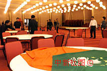 澳門回歸周年日漸臨近,將在19日晚舉行特區成立一周年慶祝晚宴的綜藝館開始布置場地,進行準備工作。中新社記者滿會喬攝