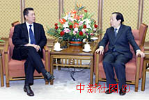 中國(guó)國(guó)務(wù)院副總理錢其琛18日在北京中南海會(huì)見(jiàn)前來(lái)述職的澳門特別行政區(qū)行政長(zhǎng)官何厚鏵。中新社記者:毛建軍 攝