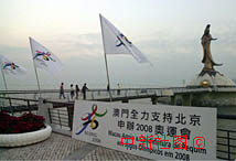 圖文:澳門新口岸布滿支持北京申辦2008年奧運會的旗幟