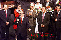 國家主席江澤民20日在慶祝澳門回歸祖國一周年慶祝大會文藝演出后走上舞臺,高歌三曲——《洪湖水》、《教我如何不想她》、《歌唱祖國》,贏得滿場掌聲。中新社傳真 滿會喬 攝