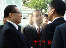 國(guó)家主席江澤民21日上午參觀澳門住宅博物館。中新社傳真 董會(huì)峰 攝