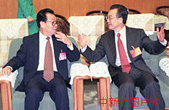 李瑞環(huán)主席(左)與溫家寶副總理親切交談