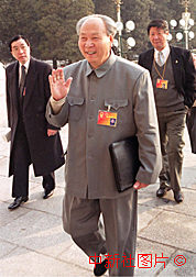 來自北京市大興縣長子營鄉(xiāng)留民營村的全國人大代表張占林十日進入人民大會堂出席全國人大會議。因其貌似毛澤東而引起人們的注視。作者:羅仰明