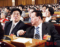 肖揚與韓杼濱出席九屆全國人大三次會議預備會