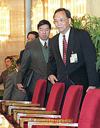 國家發展計劃委員會主任曾培炎等步入九屆全國人大三次會議新聞發布會場,就九九年經濟形勢和西部大開發等問題回答中外記者的提問。作者:陳勇