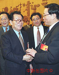 全國政協主席李瑞環六日與參加九屆全國人大三次會議的天津市代表暢談天津發展大計。作者:宗金柱