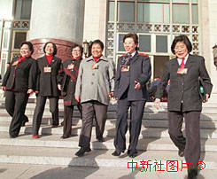 全國(guó)人大代表中的六名女法官,六日結(jié)伴到人民大會(huì)堂參加九屆全國(guó)人大三次會(huì)議第二次全體會(huì)議。作者:宗金柱