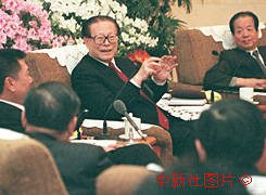 國家主席江澤民八日參加全國人大澳門代表團討論時說,澳門特區政府工作開局是好的。中新社記者 李剛 攝
