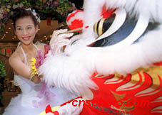 影視紅星蔡少芬為婚紗攝影店開業舞獅點晴