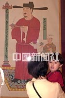 “張大千臨摹敦煌壁畫(huà)及大風(fēng)堂用印展”十八日在澳門(mén)文化中心舉行,展出著名畫(huà)家張大千于四十年代臨摹敦煌莫高窟壁畫(huà)的一百三十三幅作品,圖為觀眾觀看一幅五代時(shí)期壁畫(huà)的的設(shè)色絹摹本。中新社傳真 宗金柱攝