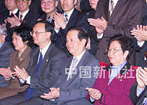 國務院副總理錢其琛日前會見中國駐紐約總領館、常駐聯合國代表團、其他常駐機構及紐約僑學界代表。錢其琛副總理和夫人、中國駐美大使楊潔篪大使和夫人與紐約僑界代表合影留念。中新社圖 陳建 攝