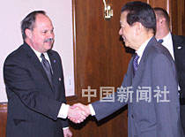 國務院副總理錢其琛十九日在紐約人壽保險公司會見了美國工商金融界人士。美國商會負責人安德爾代表工商金融界歡迎錢其琛訪美,并表示,美工商金融界堅定支持發展對華經貿關系,希望美中關系在新世紀得到更大發展。中新社圖 陳建 攝